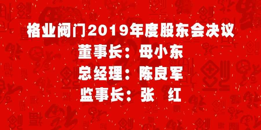 2019年12月28日,經(jīng)格業(yè)閥門股東會(huì)決議,為了確保公司運(yùn)營(yíng)的穩(wěn)定性,決定廢除董事長(zhǎng)輪流制度,改為董事長(zhǎng)選舉任期制,董事長(zhǎng)由股東選舉產(chǎn)生,每一任期三年,總經(jīng)理、監(jiān)事長(zhǎng)職務(wù)與董事長(zhǎng)同步推選,任期同為三年。
