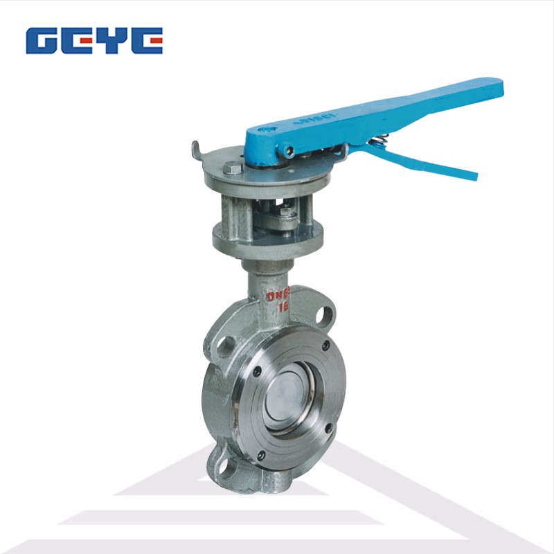手柄對夾硬密封蝶閥D73H-16C“手柄硬密封對夾蝶閥”詳細介紹 手柄硬密封對夾蝶閥采用的是三維偏心原理設計,使密封面的空間運動軌跡達到理想化,密封面相互之間無磨擦、無干涉,加之密封材料選擇得當,從而使蝶閥的密封性、耐腐蝕性、耐高溫性和耐磨性等得到了可靠的保證。 一、【手柄硬密封對夾蝶閥】產品特點 1、體積小、重量輕、結構簡單,流體阻力和操作力矩較小,操作方便,省力靈